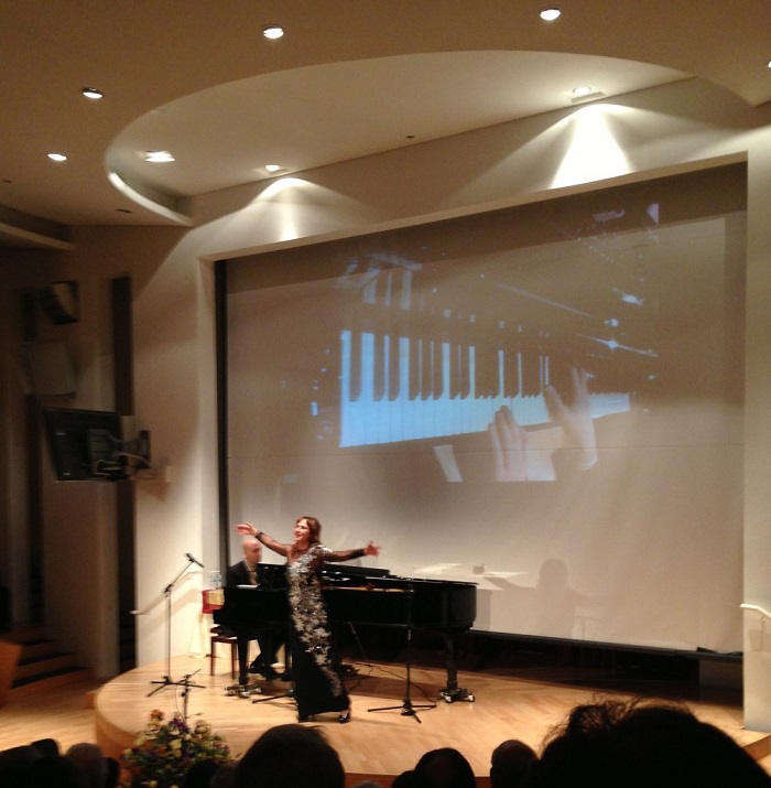 שקולה מהדהד עד קצה האודיטוריום. מריה לא רק שרה, היא נותנת "שואו" –