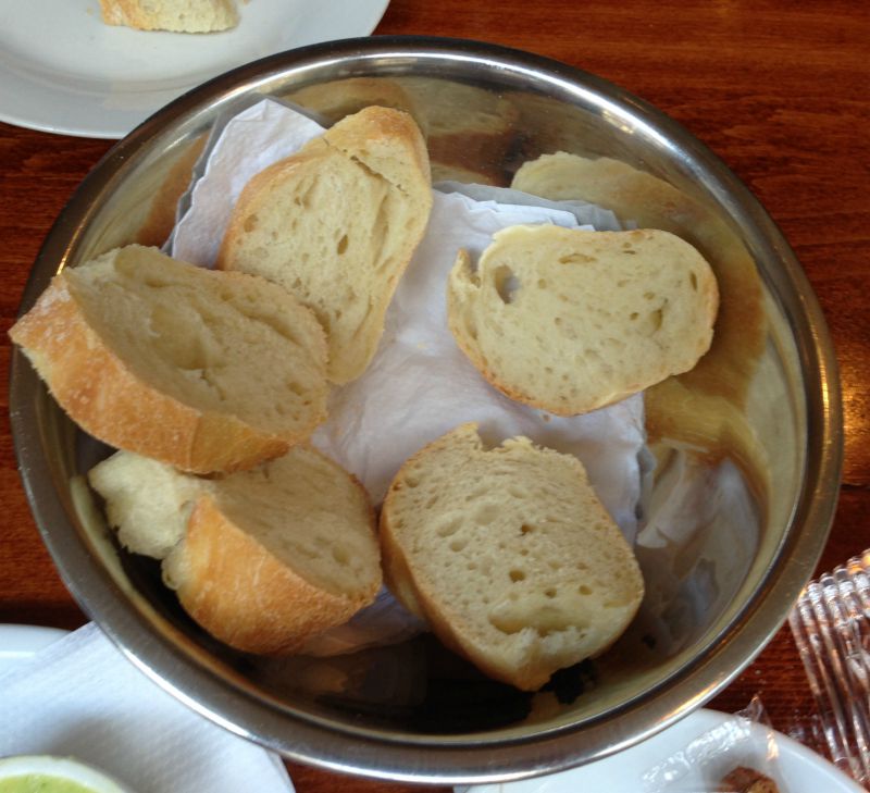 הוגשו לשולחן מזטים – חמאת תבלינים ירוקה וטפאנד זיתים בליווי לחם. המלצריות היו