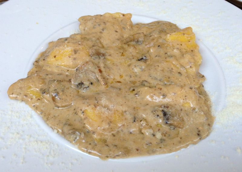 על שאלותינו.למנה עיקרית הזמנו רביולי פטריות (שבכלל שייך למנה הראשונה/ביניים אצל האיטלקים) ולובסטרים. את הלובסטרים לא טעמתי אבל הפסטה היתה סוף הדרך כמו שאומרים. נהדרת וכל ביס תענוג!