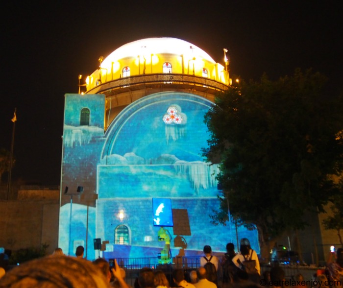 בשילוב רובוט עם מסך פלזמה והקרנה על בית הכנסת החורבה (מיצג 9, המסלול הלבן).