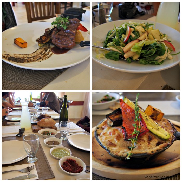 במסעדת המלון "בין הכרמים": סלט, פתיחים, פרגית וסינייה בקר וכבש. ביום