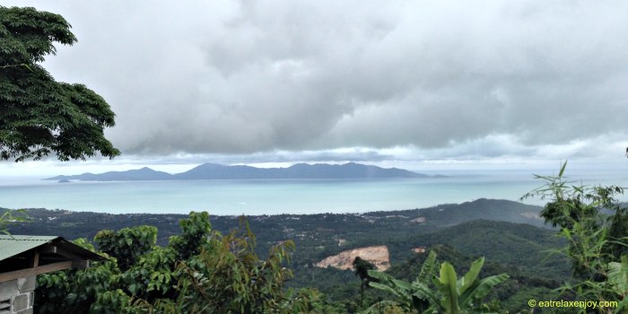 נסענו דרך מטעי בננות, מנגוסטין, דוריאן ושאר פירות לנקודת תצפית בגשם שוטף. הספקנו להסתכל לרגע קט על הנוף לפני שנכנס ענן שחור שהרטיב אותנו היטב.