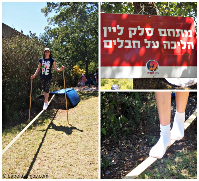 – SlackLine. אל תדאגו, תקבלו מקלות לעזור לכם להתייצב וזה עדיין קשה. מה שהפתיע