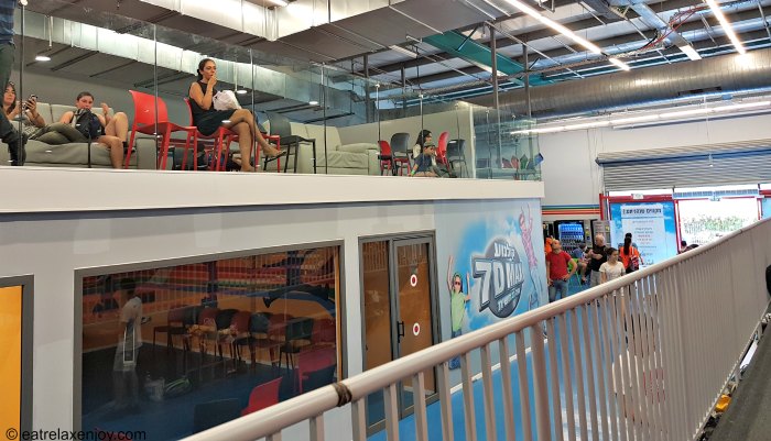 בזמן שהילדים קופצים, ההורים יכולים לשבת בגלריה של ההורים שבה יש
