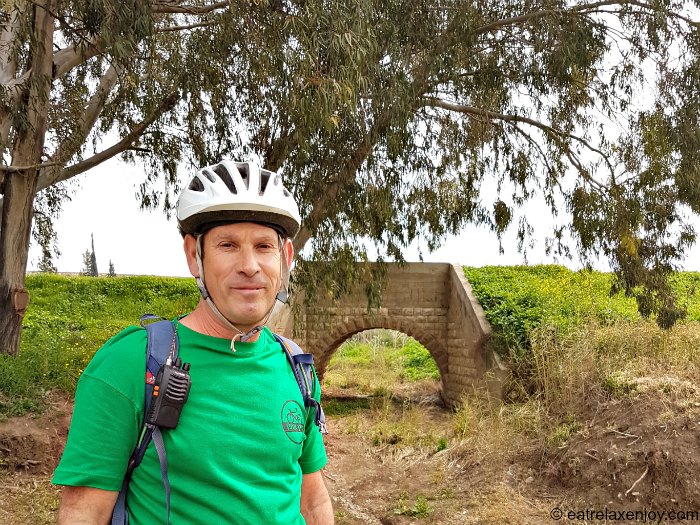במהלך הרכיבה על האופניים, שרובה בשטח מישורי, עצרנו לראות את אחד הגשרים העתיקים של הרכבת העותמנית. התורכים בנו רכבת להילחם בבריטים בסיני. מאוחר יותר המחתרות (שלנו) פוצצו את הקו. נשארו 4 גשרים מהרכבת. על גשר זה נלחמו שלא יהרסו אותו בבנית כביש 6, שמסלולו הוסט כמה עשרות מטרים וכך הגשר ניצל.