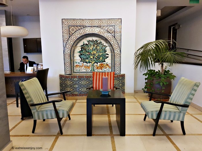 הכניסה המוגבהת היא מקום ישיבה ובילוי נעים בעונה.הלובי של המלון קטן, אבל משופץ ומעוצב גם כן עם פינות חמד.