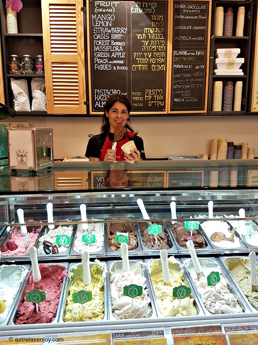 גלידריה Arte במדרחוב נחלת בנימין מגישה גלידה בייצור