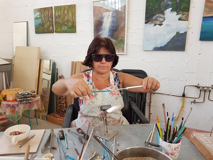 מגיל 10 בשימוש בזכוכית מורנו. הקהל הרחב מוזמן לסדנאות ולחנות הסטודיו שלה. מידע: