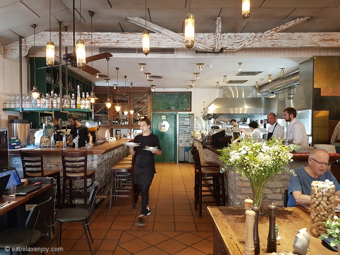 אויר נורמלי. המסעדה נמצאת בבנין עתיק משומר עם חלונות ארוכים עם תריסי עץ. בצד