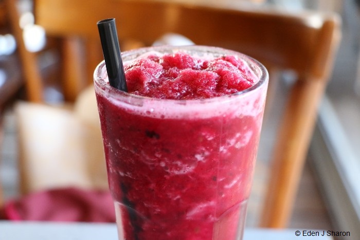 בסיס תפוז וגרוס עם קרח (21 ₪). מבין מגוון השייקים זה הכי קליל ובמרקם ברד,