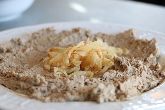 כבוש וסלסלת לחמים (34 ₪). מנה ענקית של כבד קצוץ משובח, כמו של הדודה,